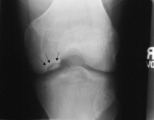 Osteochondritis dessicans (os-tee-o-kohn-DRY-tis DES-uh-kanz) is a joint condition in which a piece of cartilage, along with a thin layer of the bone beneath it, comes loose from the end of a bone.  Caused by reduced blood flow to the end of a bone, osteochondritis dessicans occurs most often in young men, particularly after an injury to a joint. The knee is most commonly affected, although osteochondritis dessicans can occur in other joints, including your elbow, shoulder, hip and ankle.  If the loosened piece of cartilage and bone stays put, lying close to where it detached, you may have few or no symptoms of osteochondritis dessicans, and the fracture can often heal by itself. Surgical repair may be necessary if the fragment gets jammed between the moving parts of your joint.