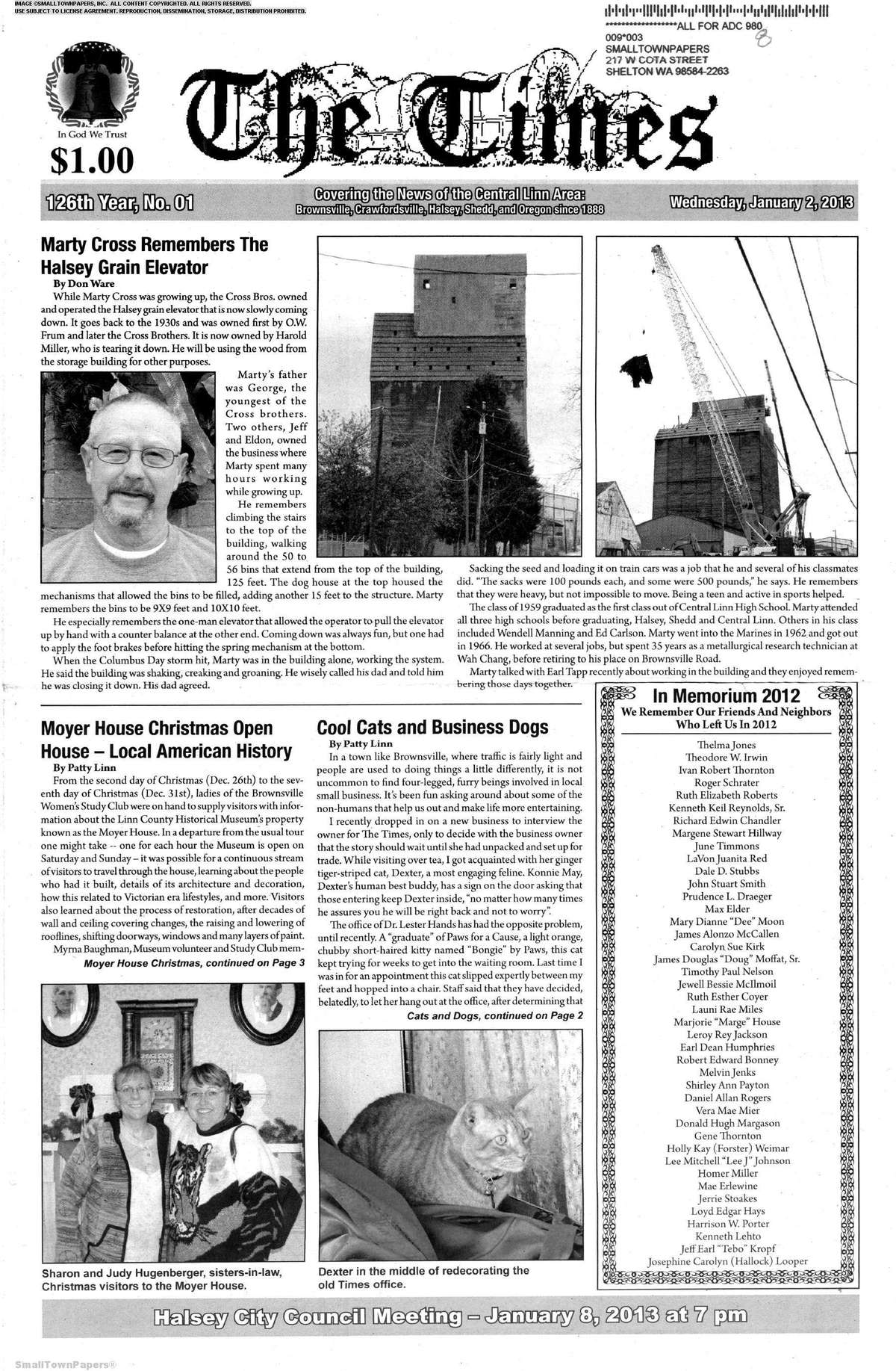 You’ll still only have about as many readers as this local newspaper whose lead stories on Wednesday, January 2nd, 2013 had something to do with a grain elevator and a cat.