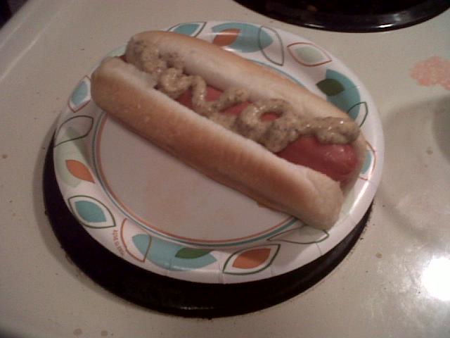 Insert Haute Dauge au Meat de la Mystére into Microwave and heat on high for 30 seconds. Do not be concerned if Haute Dauge au Meat de la Mystére has areas that look burnt and exploded. It will not affect the flavor. Insert Haute Dauge au Meat de la Mystére into Bunné. Add condiments as desired. Enjoy.